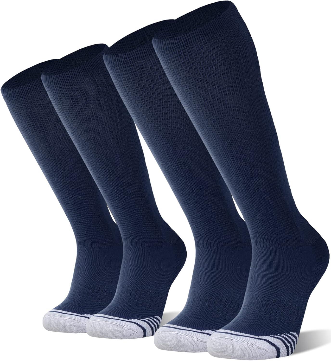 FITRELL 2/3 Pack Baseball Soccer Softball Socks for Kids Youth Men & Women Over-the-Calf Knee High Socks (Multiple Colors)(Navy Blue (2 Pack))