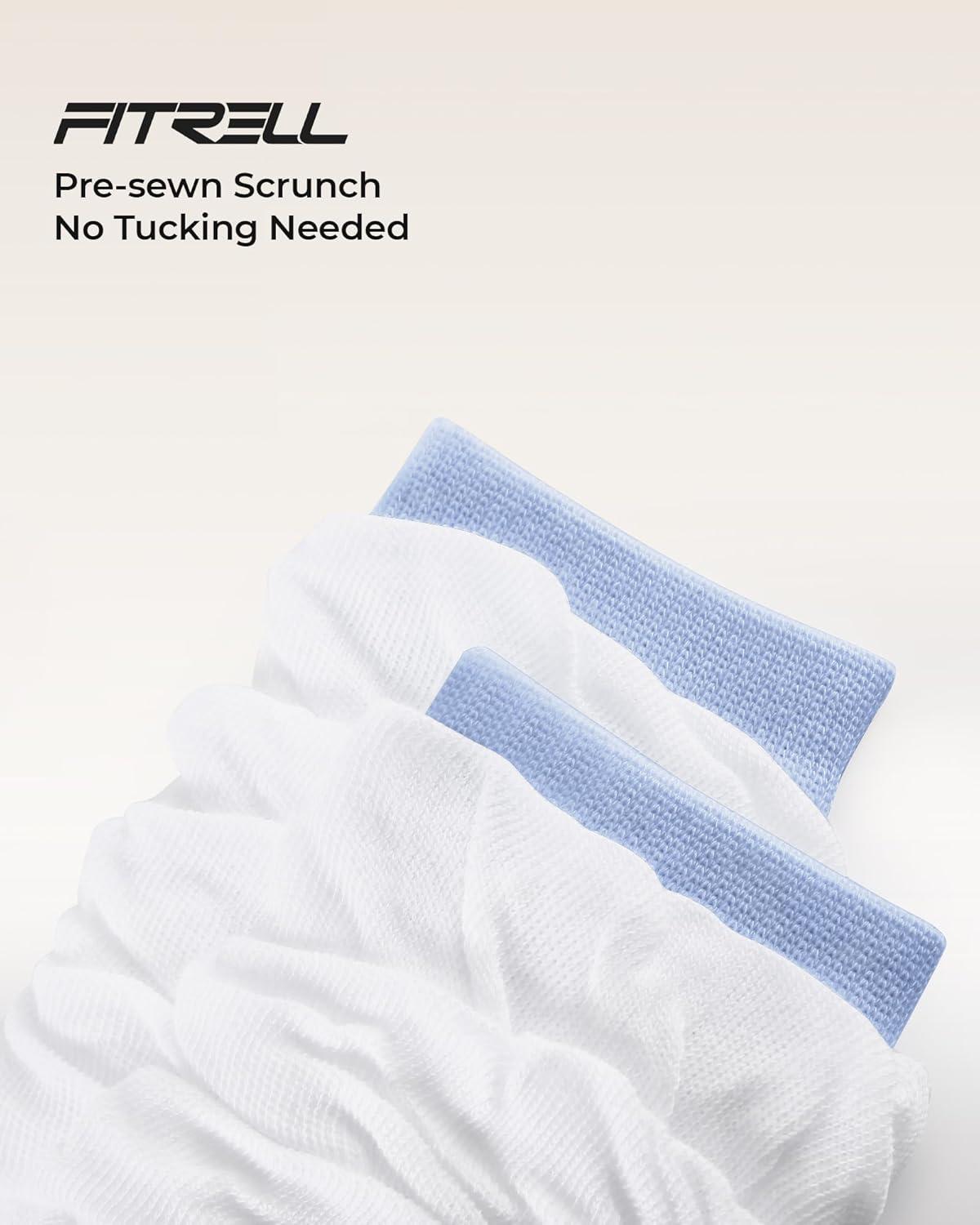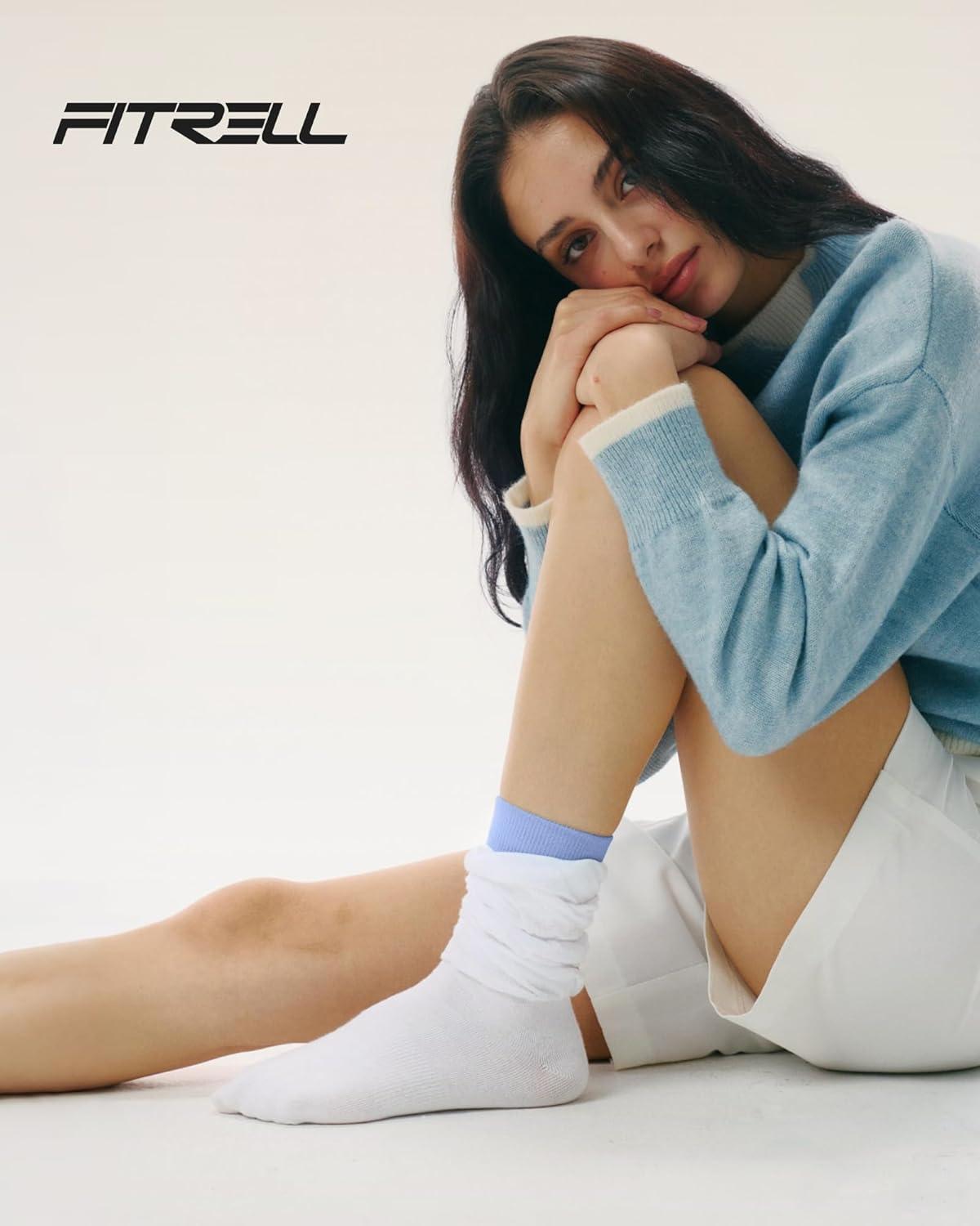 FITRELL Slouch Crew Socks for Women, Pre-sewn Slouch Look Soft Cotton Mid Calf Retro Cute Socks 3 Pairs (Can’t Straighten)(White Grey+navy+royal Blue)